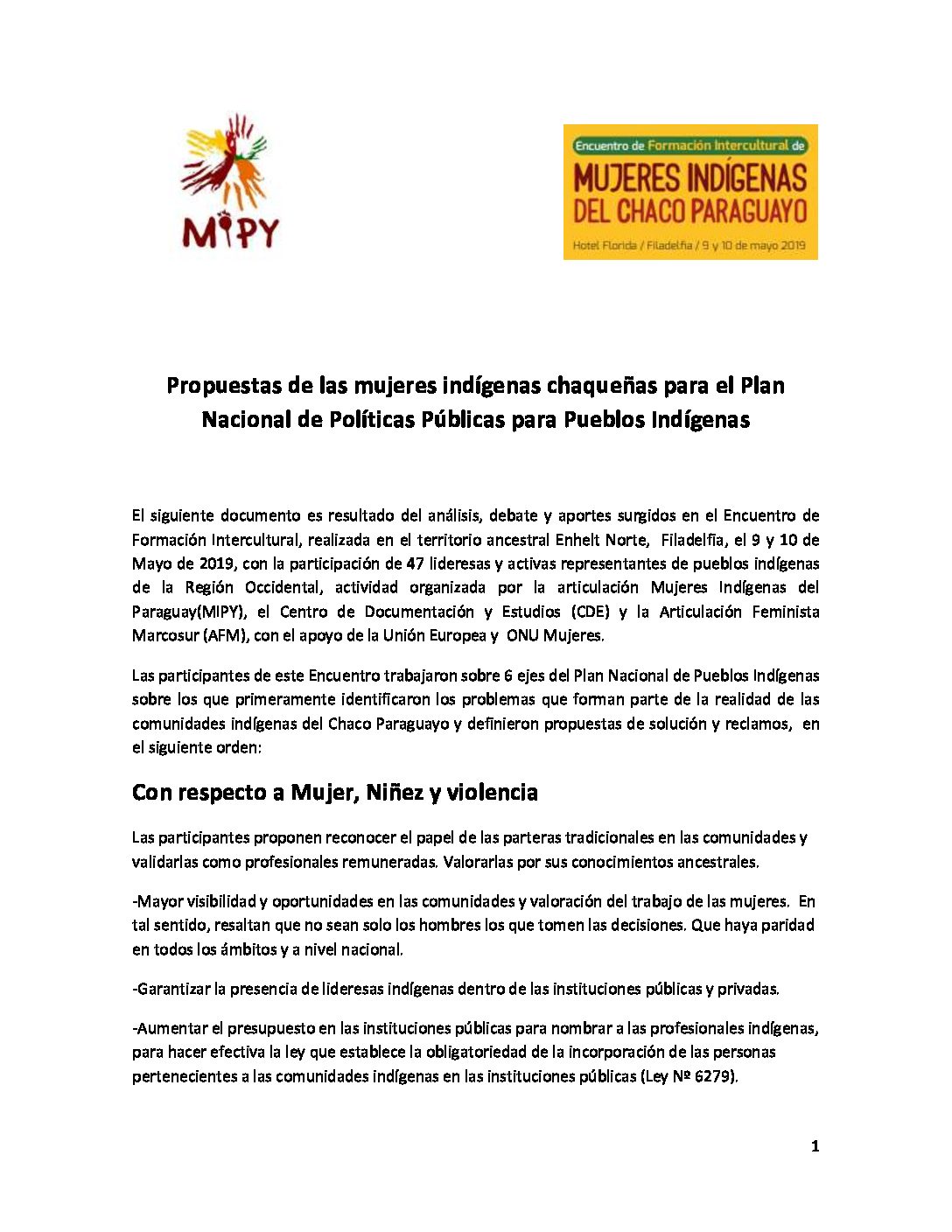 Propuestas de las mujeres indígenas chaqueñas para el Plan Nacional de Políticas Públicas para Pueblos Indígenas