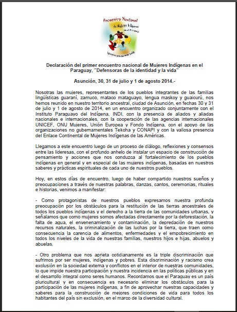 Declaración del Primer Encuentro Nacional de Mujeres Indígenas