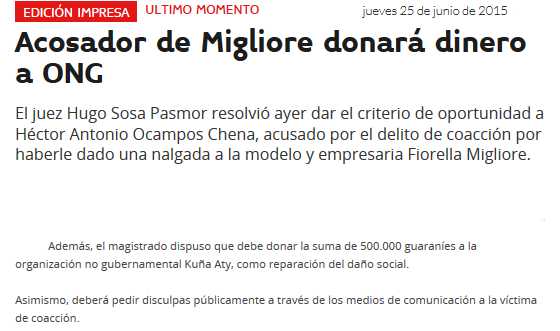 Página: 55 Fecha: 25 Jun 2015 Link:http://www.ultimahora.com/acosador-migliore-donara-dinero-ong-n907857.html