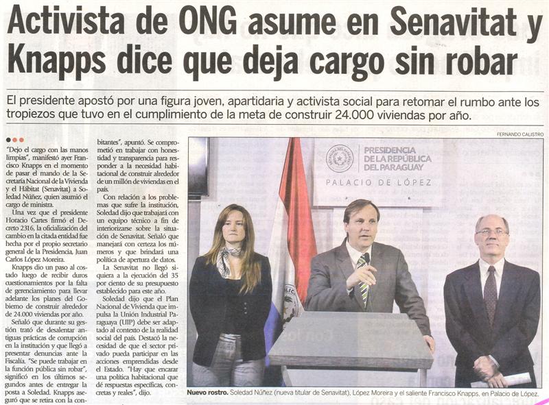 Activista de ONG asume en Senavitat y Knapps dice que deja cargo sin robar