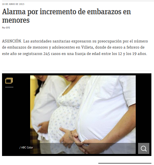 Página: Fecha: 18 Jun 2015 Link:http://www.abc.com.py/nacionales/alarma-por-incremento-embarazos-en-menores-1378560.html