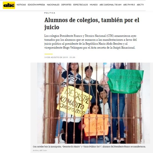 Link: https://www.abc.com.py/edicion-impresa/politica/2019/08/14/alumnos-de-colegios-tambien-por-el-juicio/