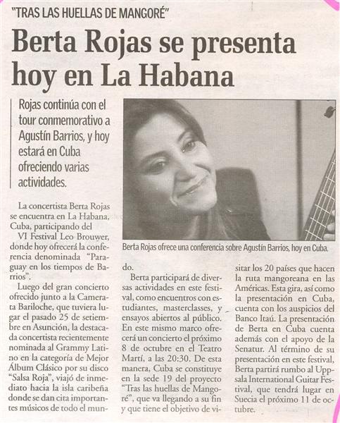Berta Rojas se presenta hoy en La Habana