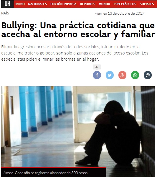 Link: http://www.ultimahora.com/bullying-una-practica-cotidiana-que-acecha-al-entorno-escolar-y-familiar-n1112836.html