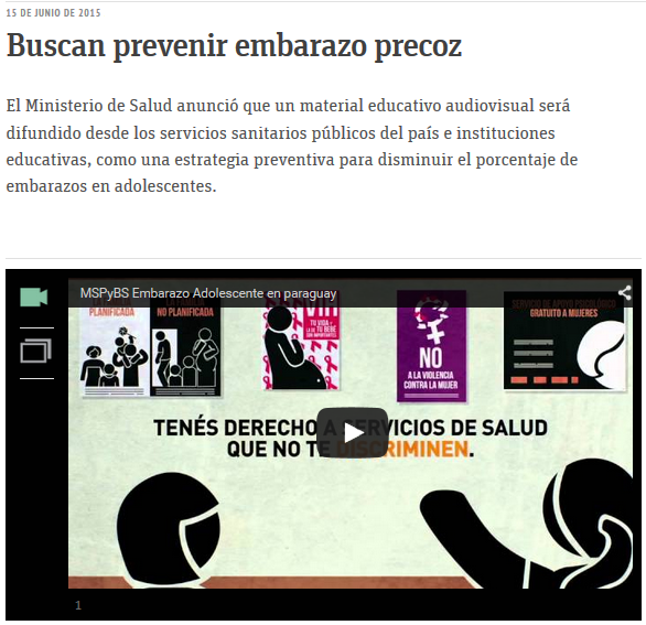 Página: Fecha: 15 Jun 2015 Link:http://www.abc.com.py/nacionales/buscan-prevenir-embarazo-precoz-1377585.html