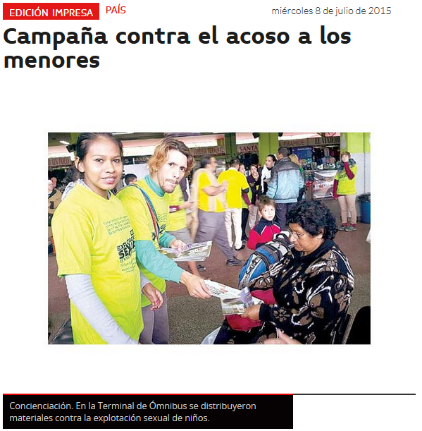Página: 39 Fecha: 08 Jul 2015 Link:http://www.ultimahora.com/campana-contra-el-acoso-los-menores-n911391.html