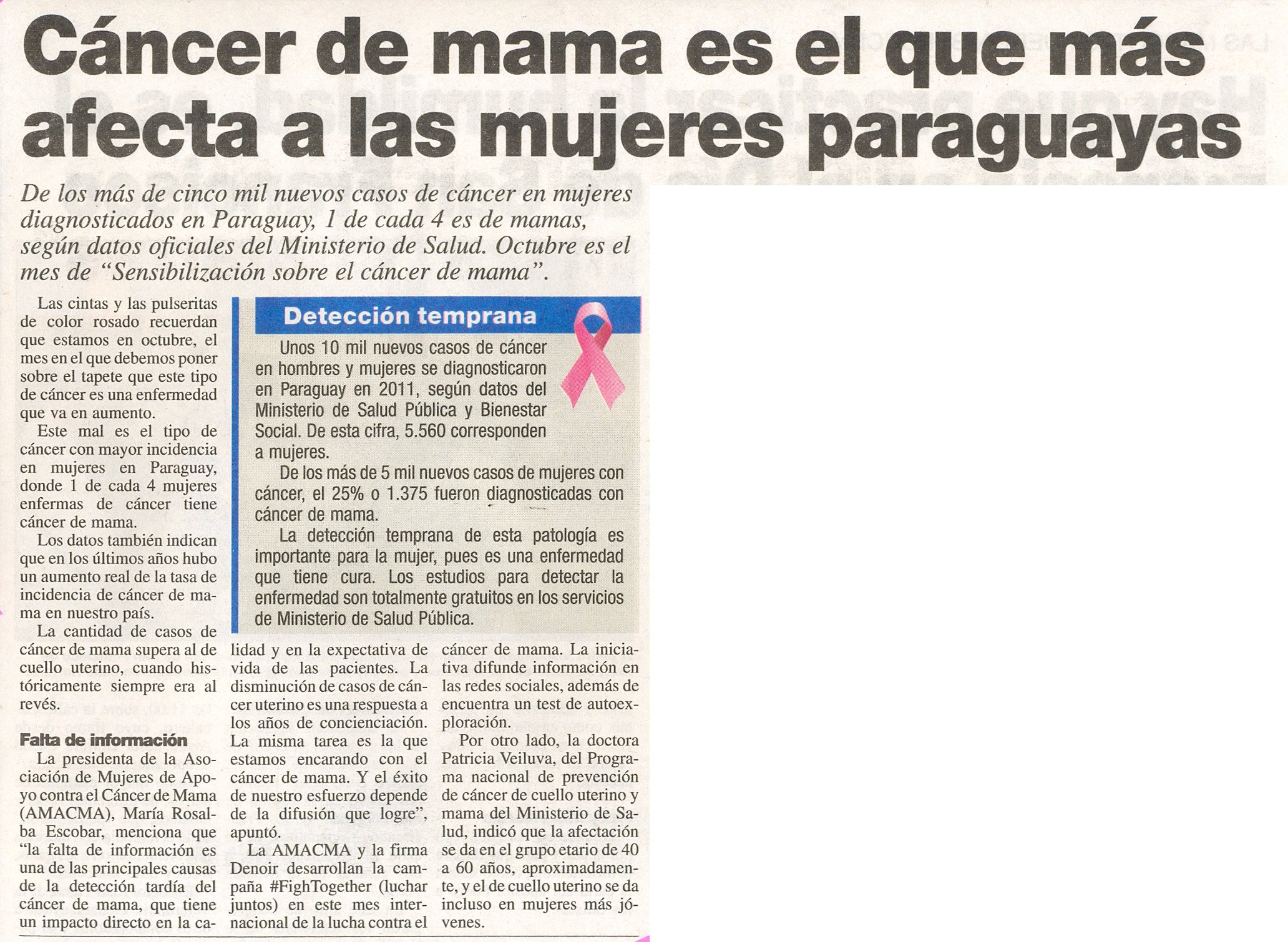 Cáncer de mama es el que más afecta a las mujeres paraguayas