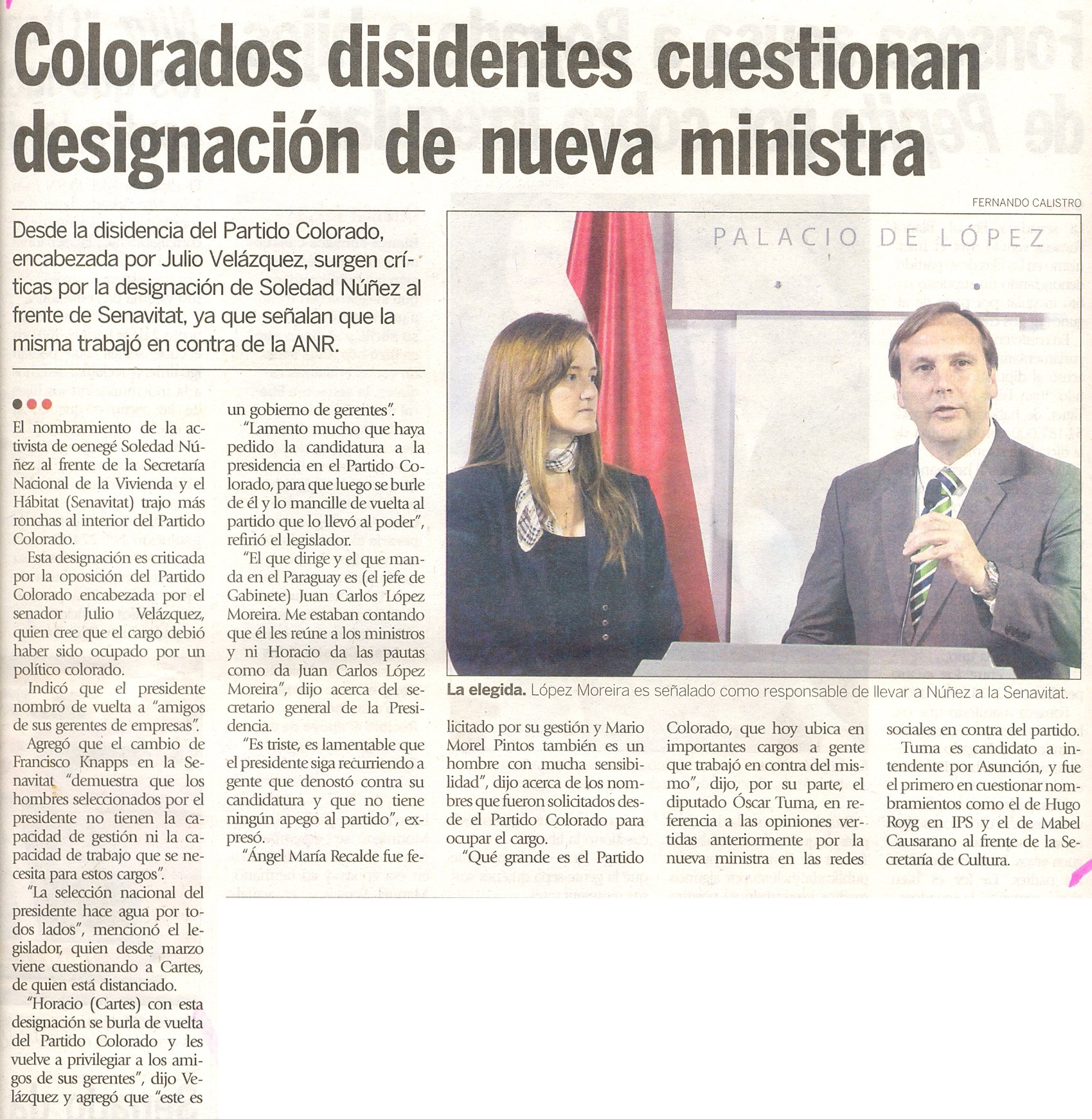 Colorados disidentes cuestionan designación de nueva ministra