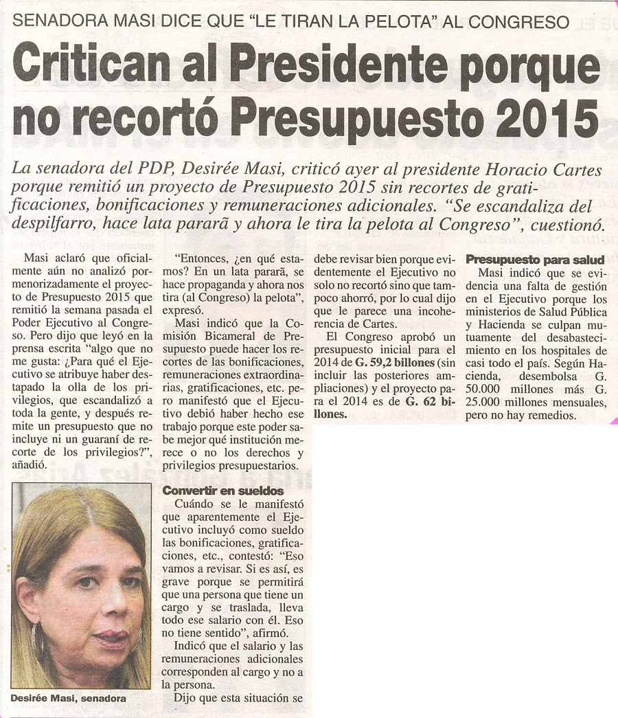 Link: http://www.abc.com.py/edicion-impresa/politica/critican-al-presidente-porque-no-recorto-presupuesto-2015-1281786.html