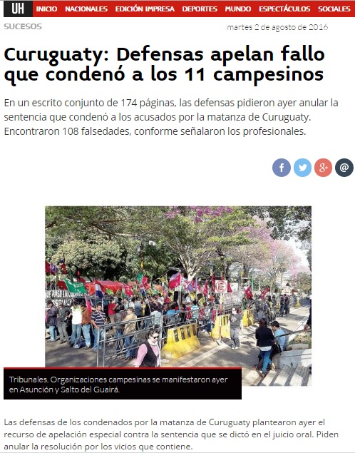 Link: http://www.ultimahora.com/curuguaty-defensas-apelan-fallo-que-condeno-los-11-campesinos-n1012595.html