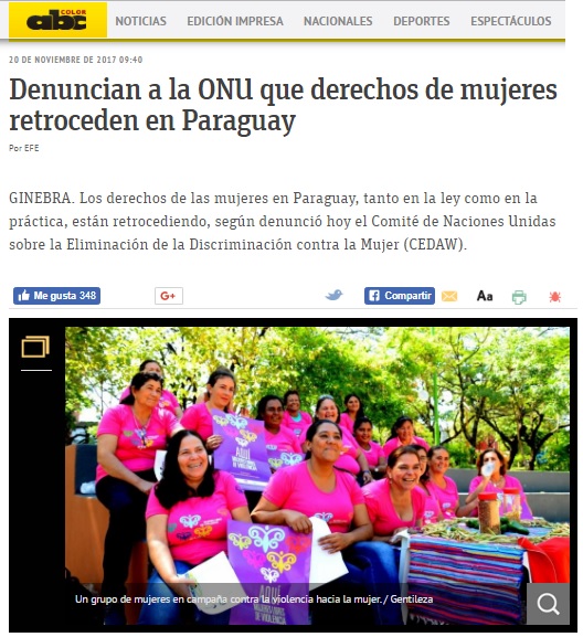 Link: http://www.abc.com.py/internacionales/denuncian-a-la-onu-que-derechos-de-mujeres-retroceden-en-paraguay-1651346.html