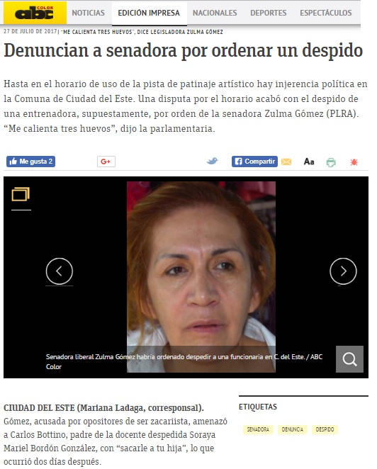Link: http://www.abc.com.py/edicion-impresa/politica/denuncian-a-senadora-por-ordenar-un-despido-1616887.html