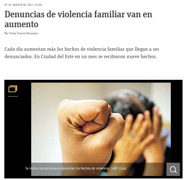 Página: Fecha: 07 Ago 2015 Link:http://www.abc.com.py/especiales/fin-de-semana/denuncias-de-violencia-familiar-van-en-aumento-1395529.html