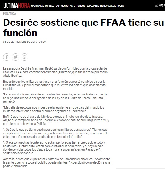 Desirée sostiene que FFAA tiene su función