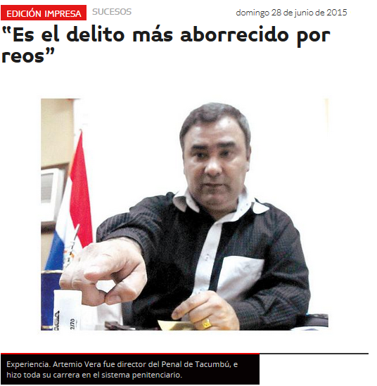 Página: 62 Fecha: 28 Jun 2015 Link:http://www.ultimahora.com/es-el-delito-mas-aborrecido-reos-n908624.html