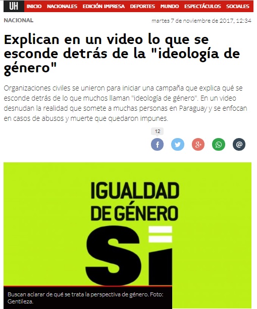 Página: Fecha: 07 Nov 2017 Link:http://www.ultimahora.com/explican-un-video-lo-que-se-esconde-detras-la-ideologia-genero-n1117806.html