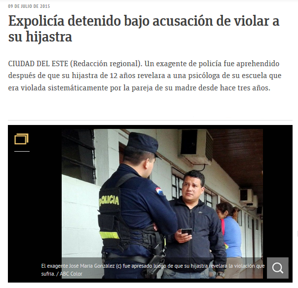 Link: http://www.abc.com.py/edicion-impresa/judiciales-y-policiales/expolicia-detenido-bajo-acusacion-de-violar-a-su-hijastra-1385705.html