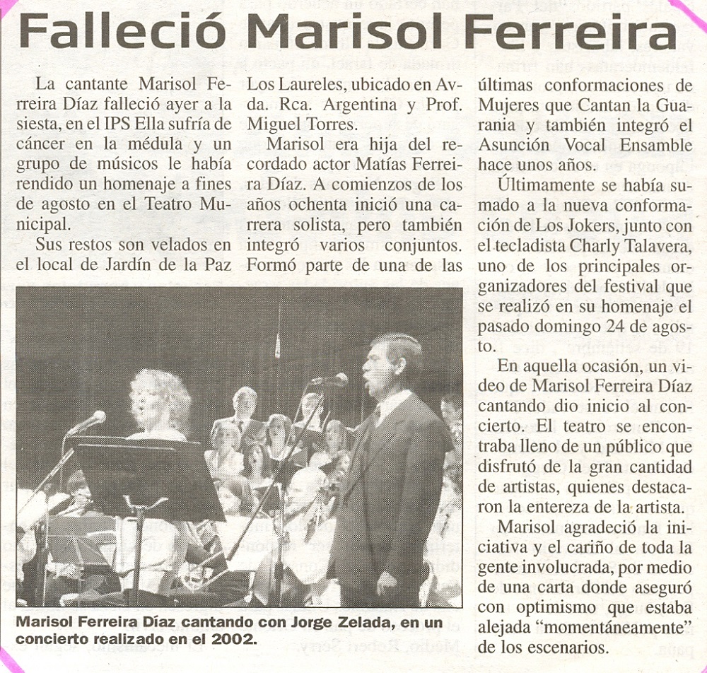 Link: http://www.abc.com.py/edicion-impresa/artes-espectaculos/fallecio-marisol-ferreira-1286566.html