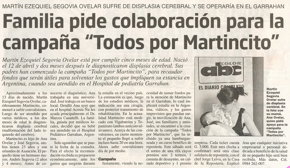 Familia pide colaboración para la campaña «Todos por Martincito»