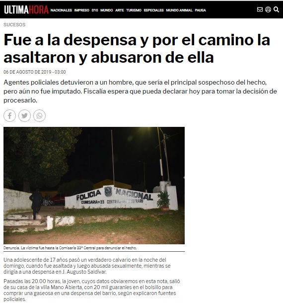Link: https://www.ultimahora.com/fue-la-despensa-y-el-camino-la-asaltaron-y-abusaron-ella-n2836213.html