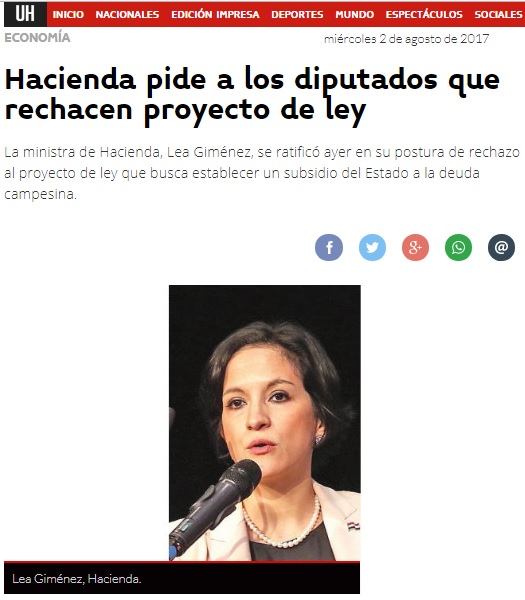Página: 10 Fecha: 02 Ago 2017 Link:http://www.ultimahora.com/hacienda-pide-los-diputados-que-rechacen-proyecto-ley-n1099802.html
