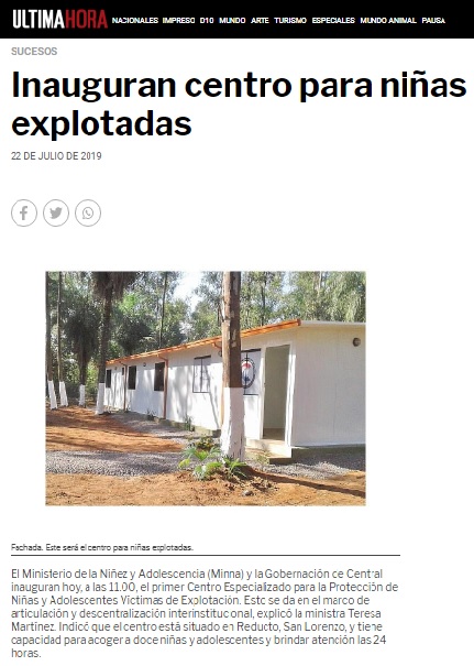Página: 44 Fecha: 04 Sep 2019 Link:https://www.ultimahora.com/inauguran-centro-ninas-explotadas-n2833160.html