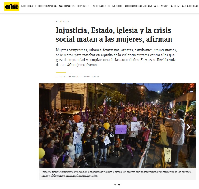 https://www.abc.com.py/edicion-impresa/politica/2019/11/26/injusticia-estado-iglesia-y-la-crisis-social-matan-a-las-mujeres-afirman/