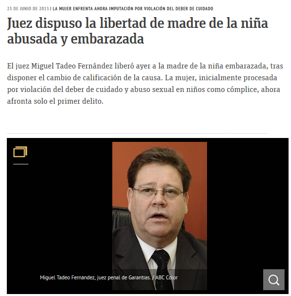 Link: http://www.abc.com.py/edicion-impresa/judiciales-y-policiales/juez-dispuso-la-libertad-de-madre-de-la-nina-abusada-y-embarazada-1380022.html