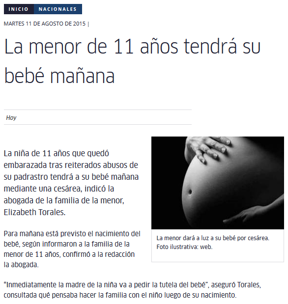 Página: Fecha: 11 Ago 2015 Link:http://www.hoy.com.py/nacionales/la-menor-de-11-anos-tendra-su-bebe-manana
