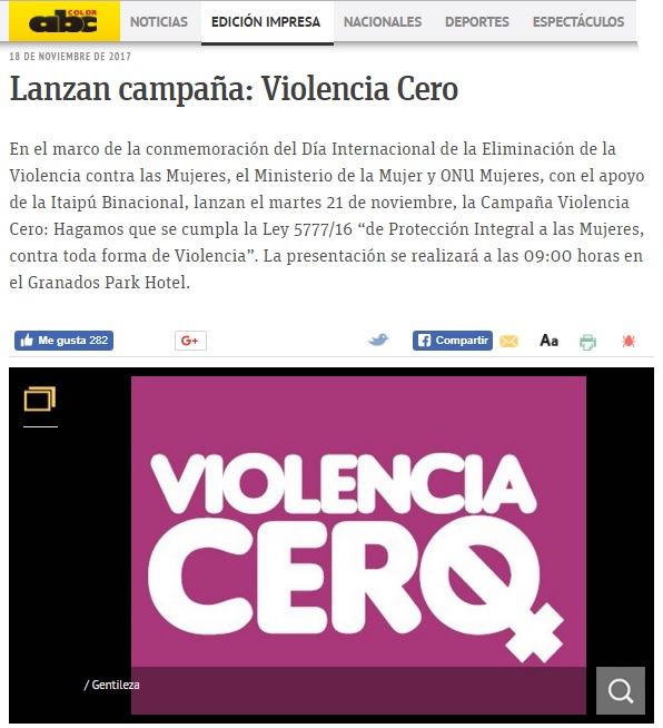 Sección: Página: Fecha: 18 Nov 2017 Link:http://www.abc.com.py/edicion-impresa/locales/lanzan-campana-violencia-cero-1650678.html