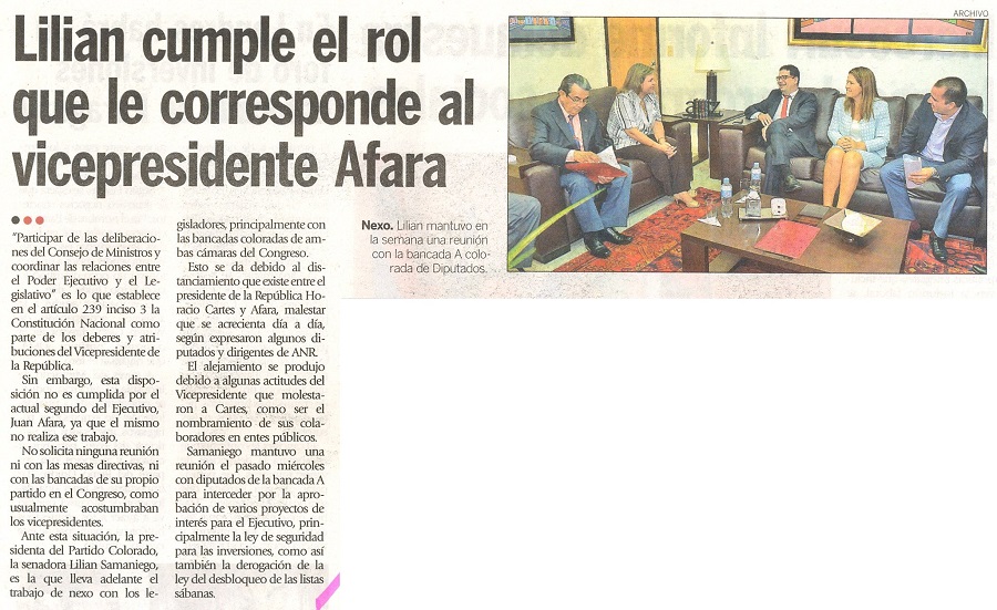 Lilian cumple el rol que le corresponde al vicepresidente Afara