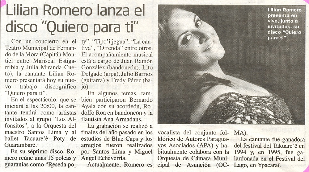 Lilian Romero lanza el disco «Quiero para ti»