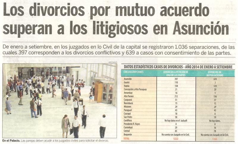 Los divorcios por mutuo acuerdo superan a los litigiosos en Asunción