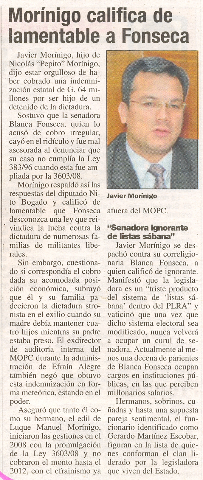Morínigo califica de lamentable a Fonseca