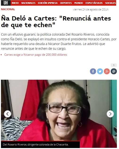 Ña Deló a Cartes: «Renunciá antes de que te echen»