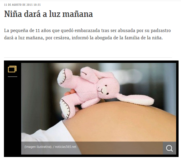 Categorizacion: Abuso de menores, Abuso sexual de niñas y niños, Abuso sexual infantil, CICLOS DE VIDA, Derechos de niños y niñas, DERECHOS HUMANOS, Derechos reproductivos, Embarazo adolescente, Embarazo no deseado, Niños/as, Salud materno infantil, Salud reproductiva, SALUD REPRODUCTIVA, Violación a niñas y adolescentes, VIOLENCIA DE GÉNERO, VIOLENCIA SOCIAL / POLÍTICA