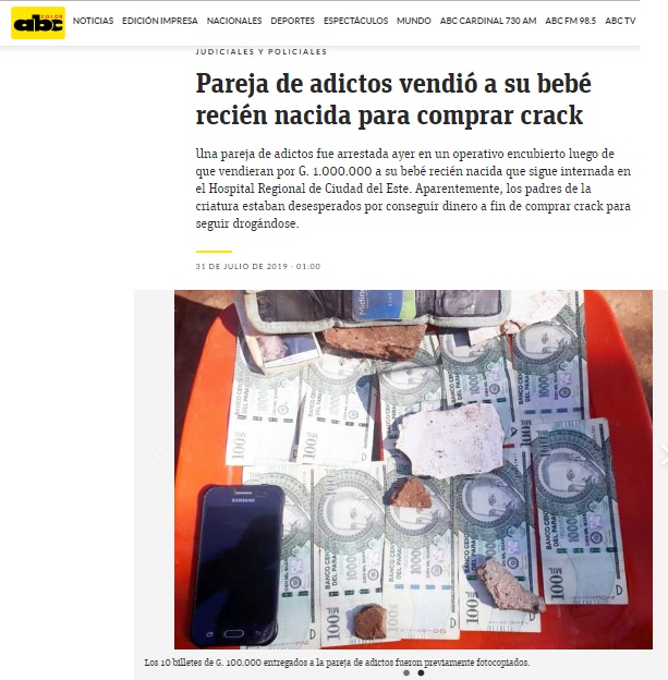 Link: https://www.abc.com.py/edicion-impresa/judiciales-y-policiales/2019/07/31/pareja-de-adictos-vendio-a-su-bebe-recien-nacida-para-comprar-crack/