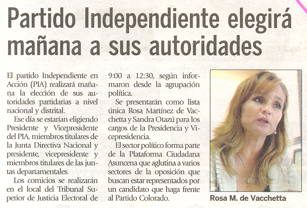 Partido Independiente elegirá mañana a sus autoridades