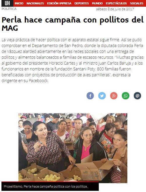 Perla hace campaña con pollitos del MAG