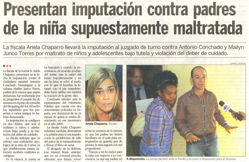 Presentan imputación contra padres de la niña supuestamente maltratada