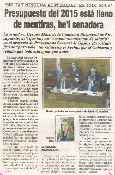 Presupuesto del 2015 está lleno de mentiras, he´i senadora