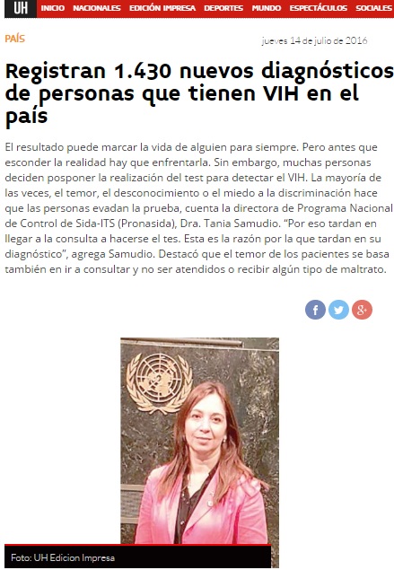 Link: http://www.ultimahora.com/registran-1430-nuevos-diagnosticos-personas-que-tienen-vih-el-pais-n1007605.html