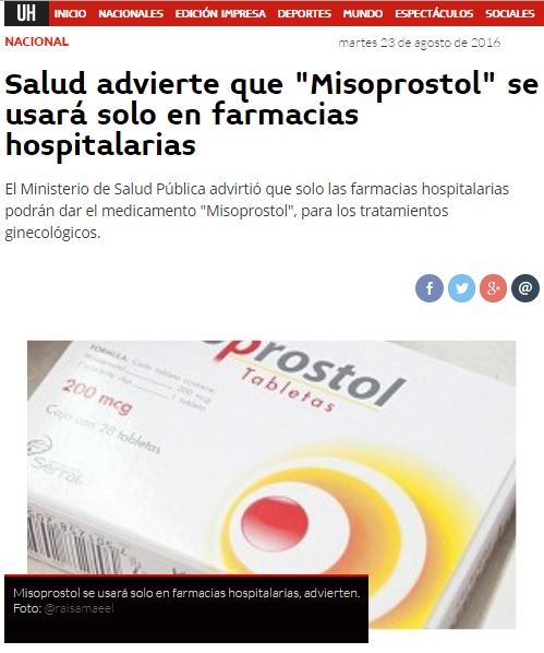 Link: http://www.ultimahora.com/salud-advierte-que-misoprostol-se-usara-solo-farmacias-hospitalarias-n1018148.html