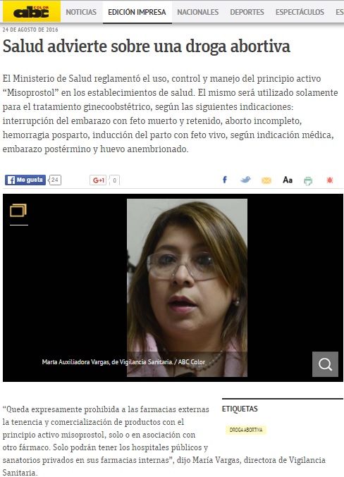 Link: http://www.abc.com.py/edicion-impresa/locales/salud-advierte-sobre-una-droga-abortiva-1511464.html