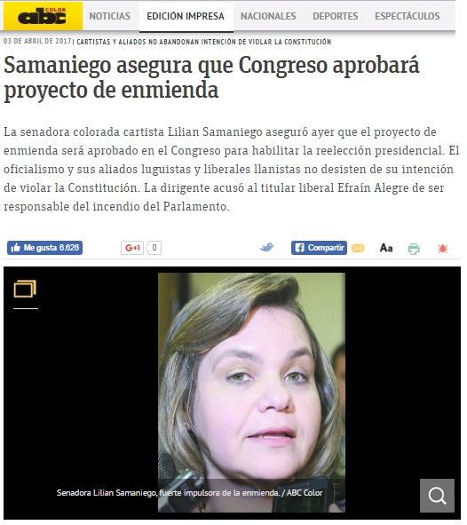 Link: http://www.abc.com.py/edicion-impresa/politica/samaniego-asegura-que-congreso-aprobara-proyecto-de-enmienda-1580318.html