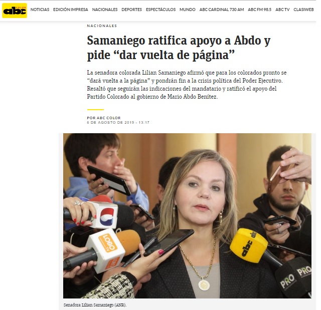 https://www.abc.com.py/nacionales/2019/08/06/samaniego-ratifica-apoyo-a-abdo-y-pide-dar-vuelta-de-pagina/