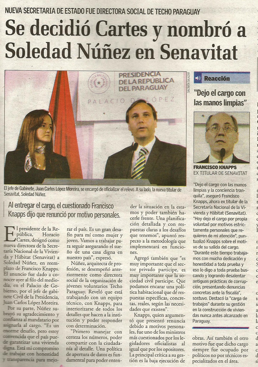 Se decidió Cartes y nombró a Soledad Nuñez en Senavitat