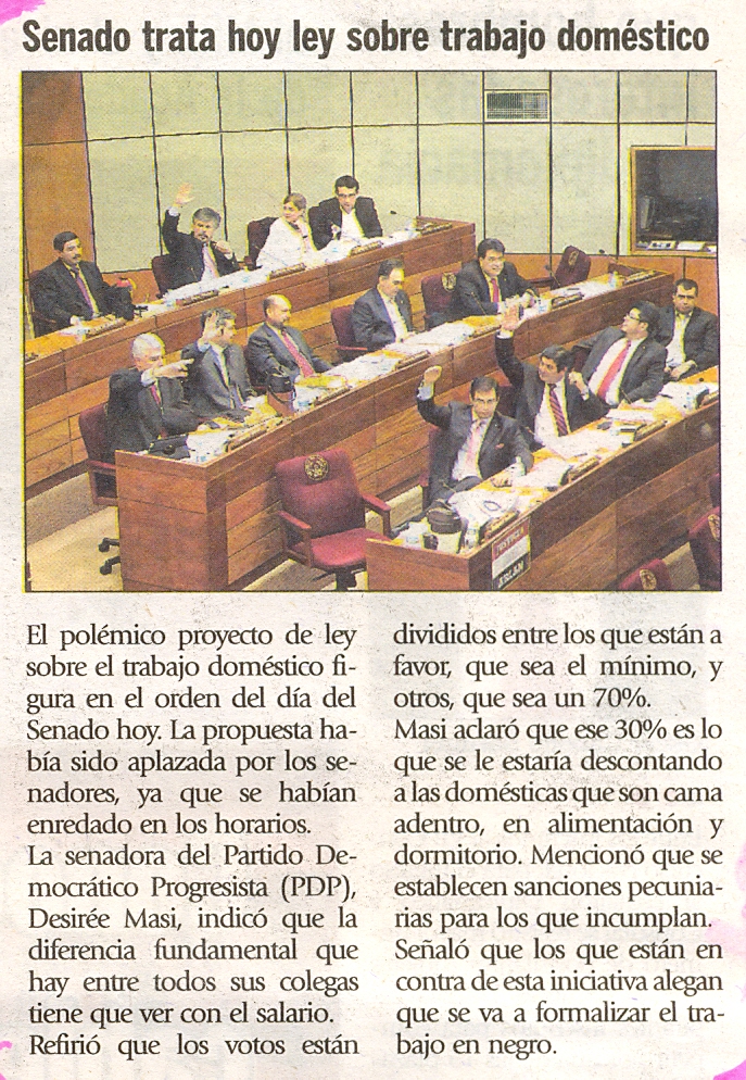 Categorizacion: DERECHO Y LEGISLACIÓN, ECONOMÍA Y TRABAJO, Proyecto de ley, Servicio doméstico remunerado