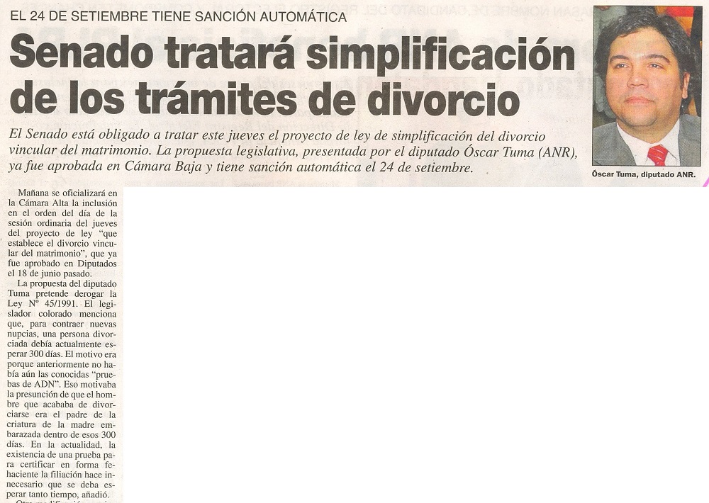 Link: http://www.abc.com.py/edicion-impresa/politica/senado-tratara-simplificacion-de-los-tramites-de-divorcio-1285711.html