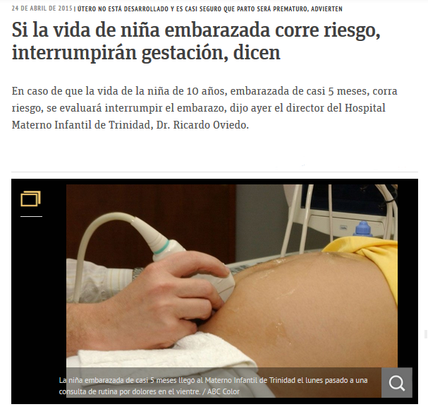 Página: 29 Fecha: 24 Abr 2015 Link:http://www.abc.com.py/edicion-impresa/locales/si-la-vida-de-nina-embarazada-corre-riesgo-interrumpiran-gestacion-dicen-1359702.html